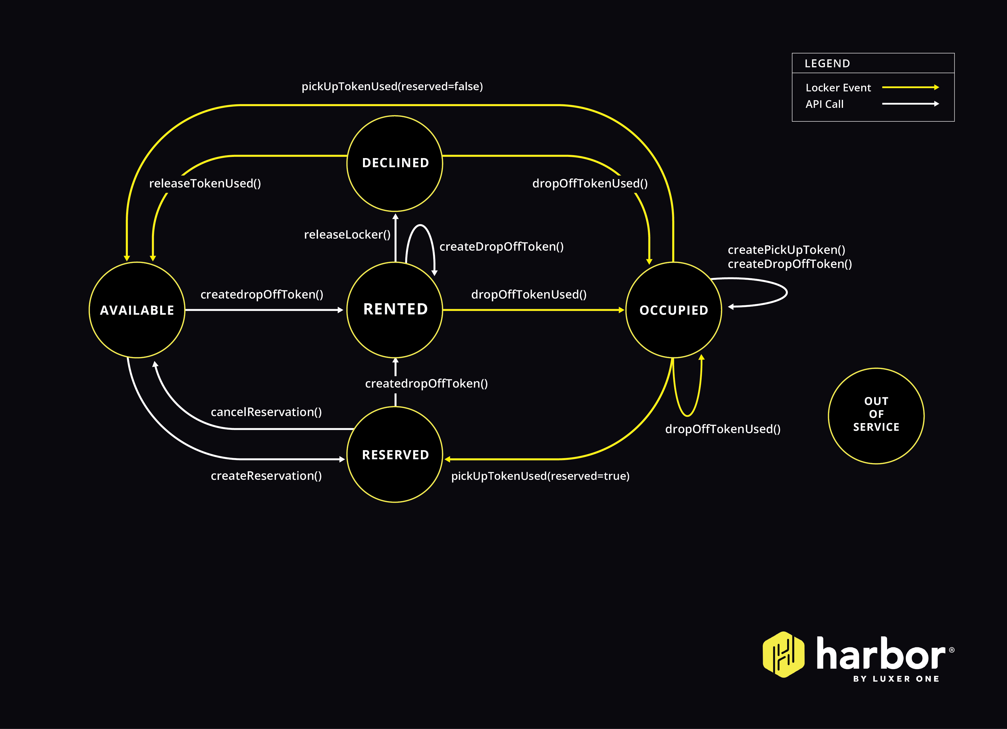 The following diagram explains the situtations that determine the locker’s state.